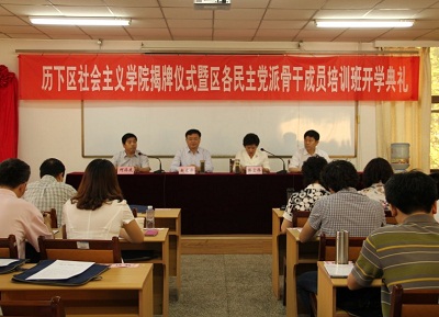 近日,历下区社会主义学院在历下区委党校揭牌成立,标志着历下区党外干部学习教育步入了新的历史阶段。同时,历下区各民主党派骨干成员培训班开班。