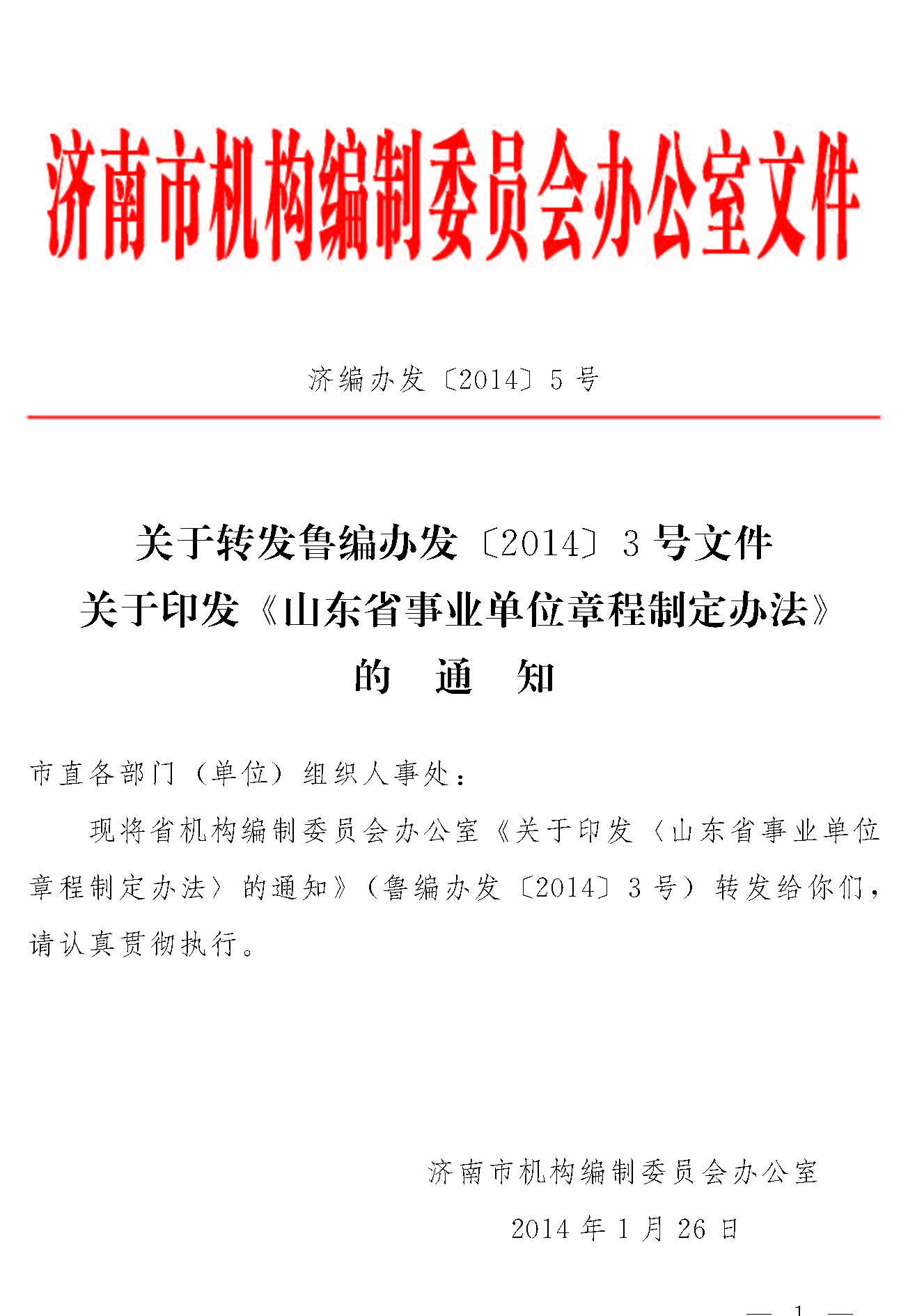 关于转发鲁编办发〔2014〕3号文件关于印发《山东省事业单位章程制定办法》的通知