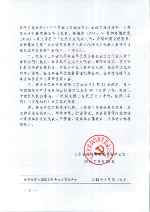 关于事业单位法定代表人变更登记不再提交离任审计报告的通知